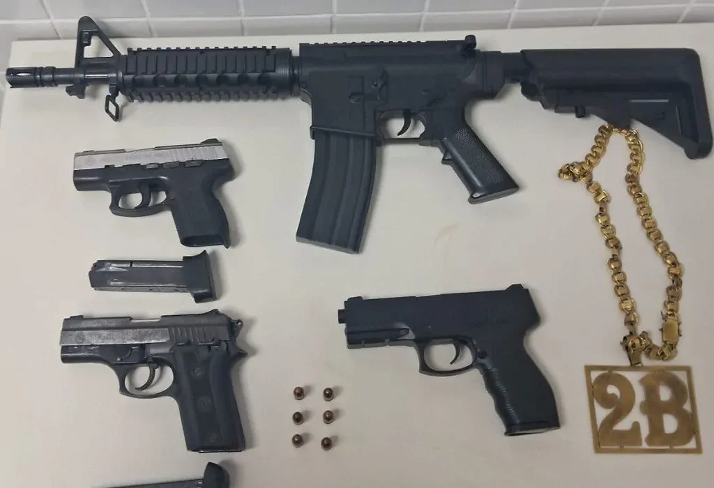 Entre os itens apreendidos estavam duas pistolas calibre .380 da marca Taurus, modelos 938 e 138, ambas com a numeração de série suprimida (raspada). Além do armamento de fogo, a PM também encontrou um simulacro de fuzil e um simulacro de pistola, juntamente com dois carregadores de pistola e seis munições calibre .380. Uma corrente dourada também foi recolhida.