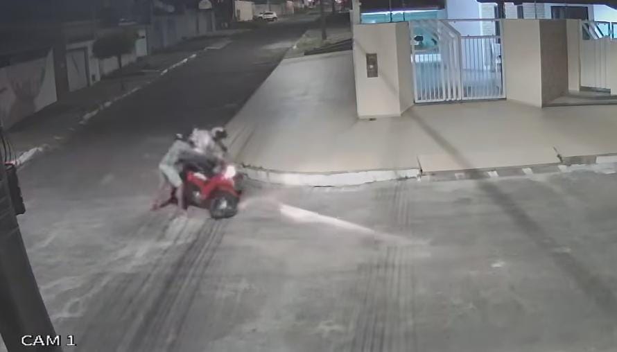 Câmera flagra roubo de motocicleta com violência próximo ao Joia da Princesa em Feira de Santana