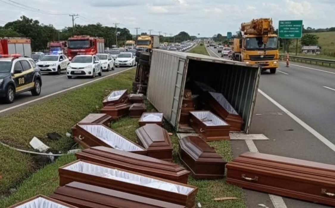 Um acidente envolvendo um caminhão carregado de caixões chamou atenção não apenas pelo caráter inusitado da carga, mas também por um fato ainda mais incomum: a população não saqueou os caixões.