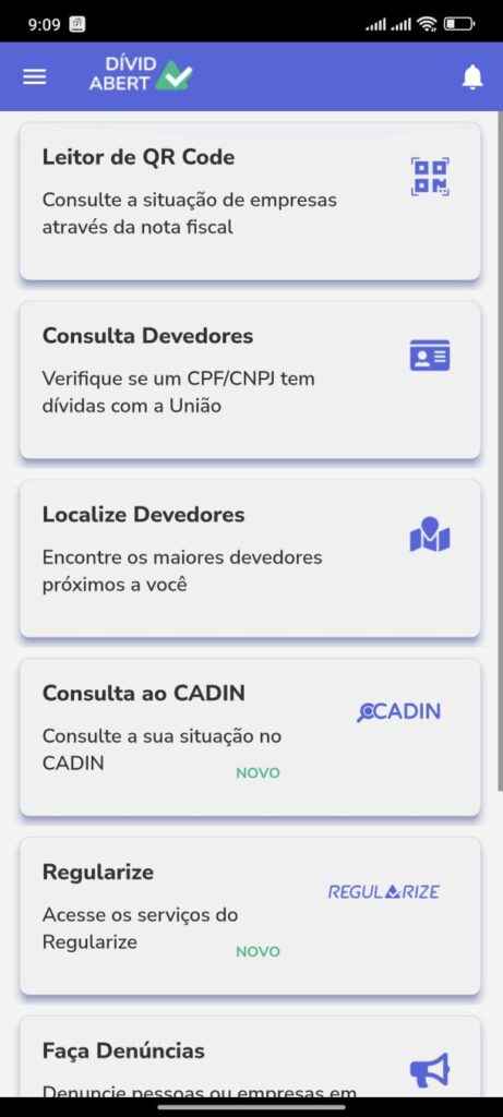 Há disponível na loja de aplicativos da Google para usuários de dispositivos Android, a Google Play, o aplicativo chamado “Dívida Aberta”, que mostram as empresas com maior débito com União, ou seja, governo federal. O usuário pode consultar de forma automática, deixando o app buscar pela localização ou, caso tenha o CNPJ em mãos, pode fazer uma busca mais específica.