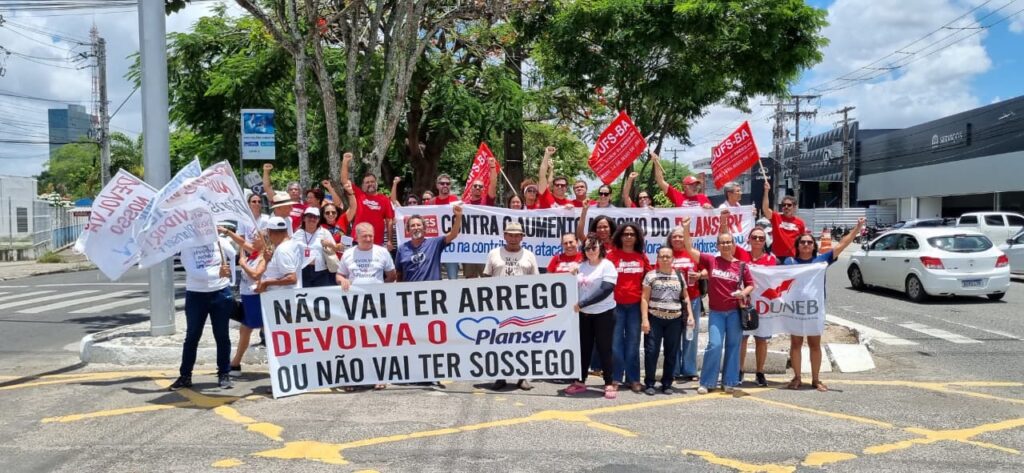 O ato teve início com uma aula pública que abordou o histórico de sucateamento do Planserv. Em seguida, os manifestantes realizaram panfletagem e exibiram faixas nas avenidas Presidente Dutra e Maria Quitéria, em Feira de Santana, chamando a atenção da população para os impactos do reajuste.