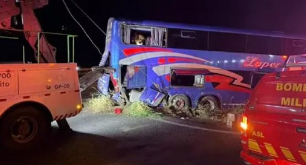 Segundo a Polícia Rodoviária Federal (PRF), o ônibus atingiu a traseira da carreta. Após o impacto, os veículos percorreram cerca de 70 metros juntos. Em seguida, o ônibus se soltou, recuou e parou no canteiro central, sem tombar.