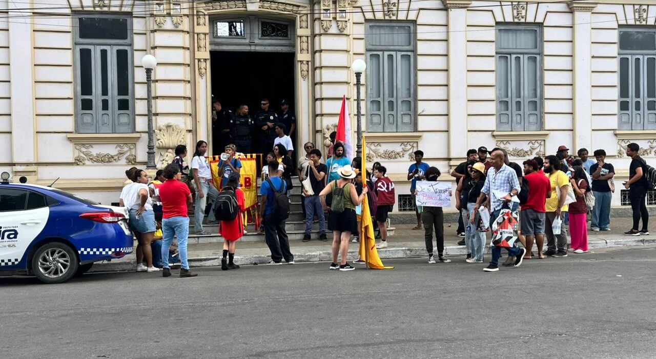 Estudantes e movimentos sindicais realizam protesto em frente a Prefeitura de Feira contra aumento da tarifa do transporte