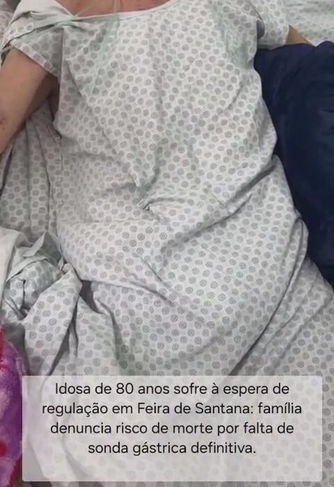 A família de Maria de Lourdes de Oliveira Miranda, 80 anos, denuncia a situação crítica vivida pela idosa, internada na UPA (Unidade de Pronto Atendimento) do bairro Queimadinha, em Feira de Santana. Hipertensa, com histórico de múltiplos AVCs (Acidente Vascular Cerebral) e dependente de medicações contínuas, ela está desde a terça (2) sem se alimentar e receber remédios essenciais, pois necessita de uma sonda gástrica definitiva para administração segura de alimentação e medicamentos.
