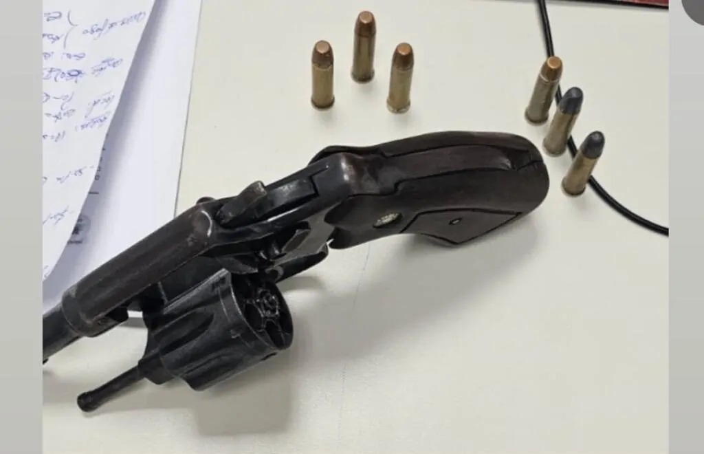 Durante a revista, os policiais encontraram um revólver em posse do adolescente. Ao verificar os dados do veículo, a equipe constatou que a placa ostentada não correspondia à numeração do chassi, sendo identificada restrição de roubo.