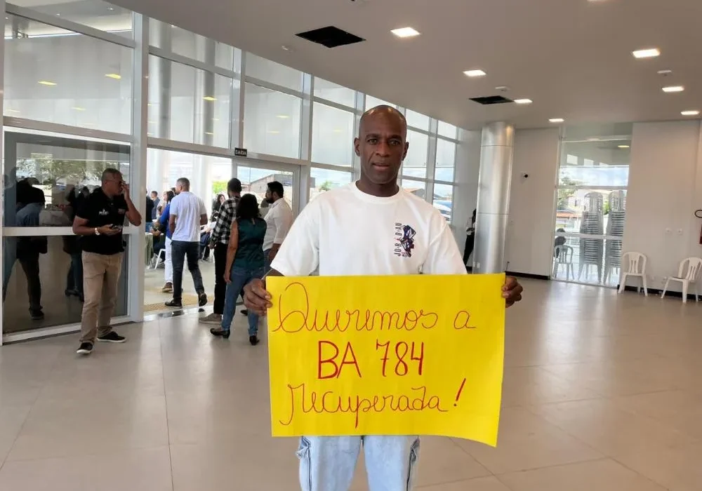 “A BA 784 está intransitável, com muitas crateras, a população sofrendo todos os dias para chegar até a sede do município, serviços de saúde, sem contar a cratera que está para dividir a rodovia ao meio. Essa é uma responsabilidade da SEINFRA (Secretaria de Infraestrutura), ou seja, compete ao governo do Estado, mas, infelizmente, uma empresa que se prontificou a fazer a restauração, até o momento não fez nada, a empresa que está no local está devendo aos moradores, pois contrataram as pessoas e não pagaram ainda, alegando que o Estado ainda não pagou, portanto, quero saber quem está falando a verdade, se é o Estado ou a empresa. O governador viu o cartaz, mas fugiu, tentei fazer um vídeo com ele, mas os assessores não deram atenção, ou seja, o governador mais uma vez se nega a falar sobre a BA 784”, disse.