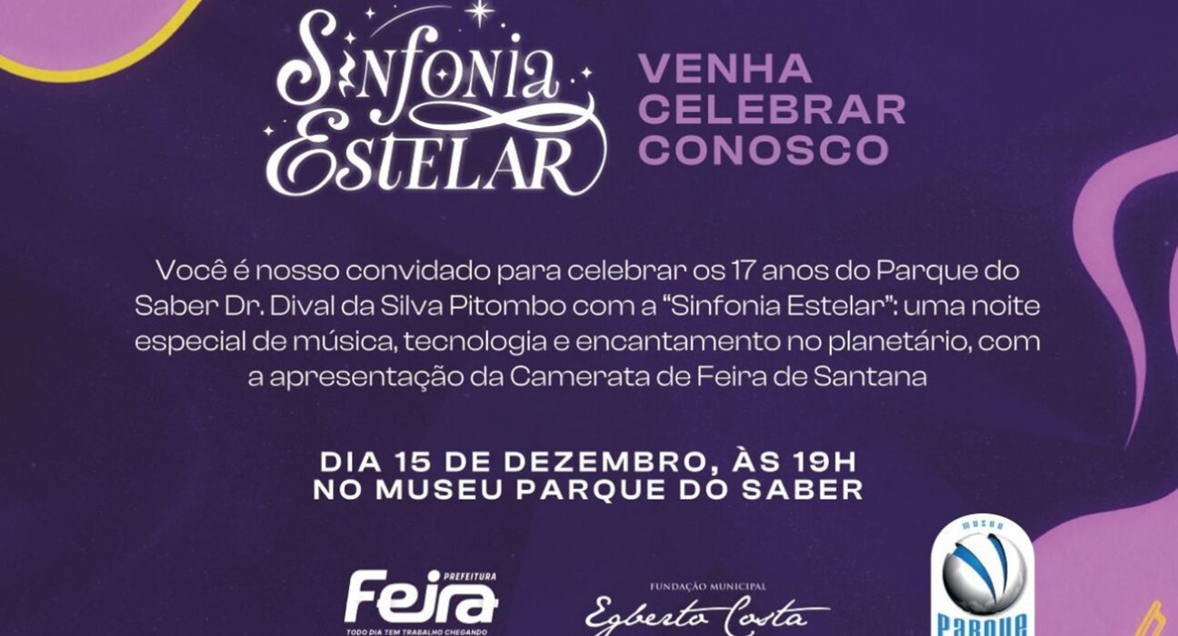 O Museu Parque do Saber Dr. Dival da Silva Pitombo, um dos principais equipamentos culturais e científicos da cidade, celebra 17 anos de fundação com uma programação especial e inédita. O evento principal será o espetáculo “Sinfonia Estelar”, uma noite que promete unir música, tecnologia e o encanto do universo.