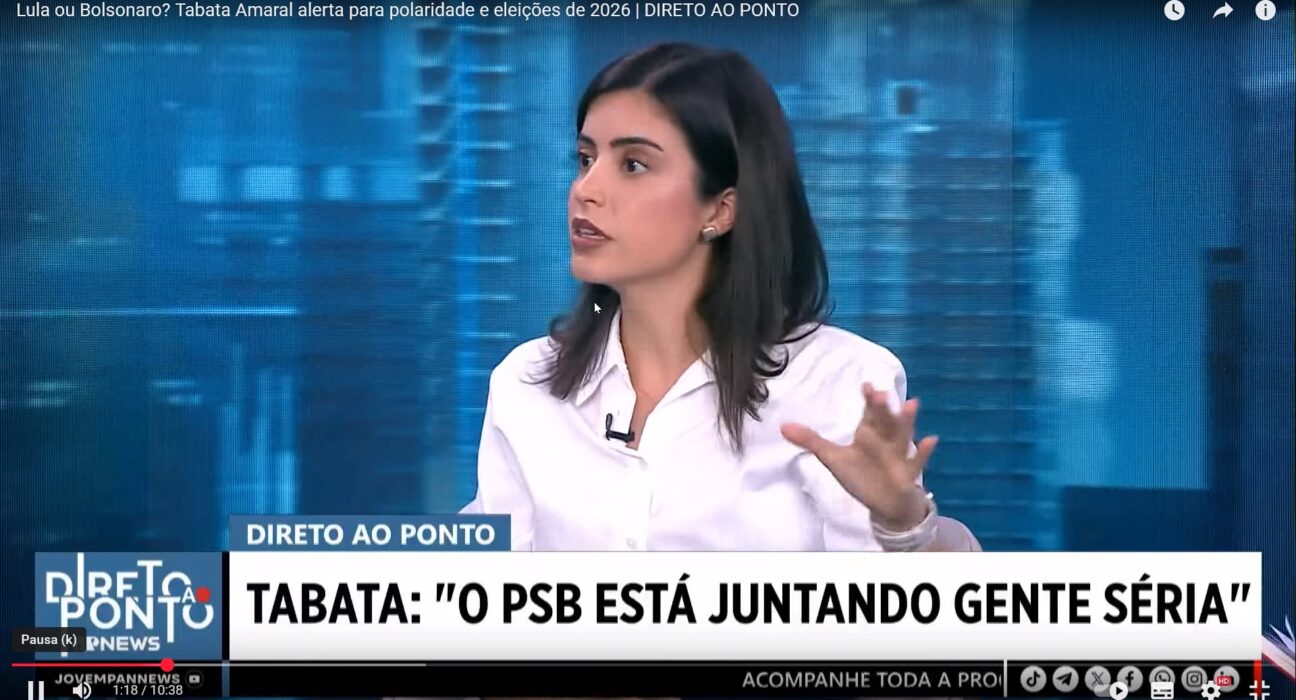 Acompanhei atentamente na noite desta segunda-feira 6, uma excelente entrevista com a deputada federal Tabata Amaral (PSB-SP) 31 anos ao programa Direto ao Ponto da Jovem News. Confesso que fiquei muito contente com o resultado da sabatina com cinco grandes jornalistas entre elas a experiente Dora Kramer.
