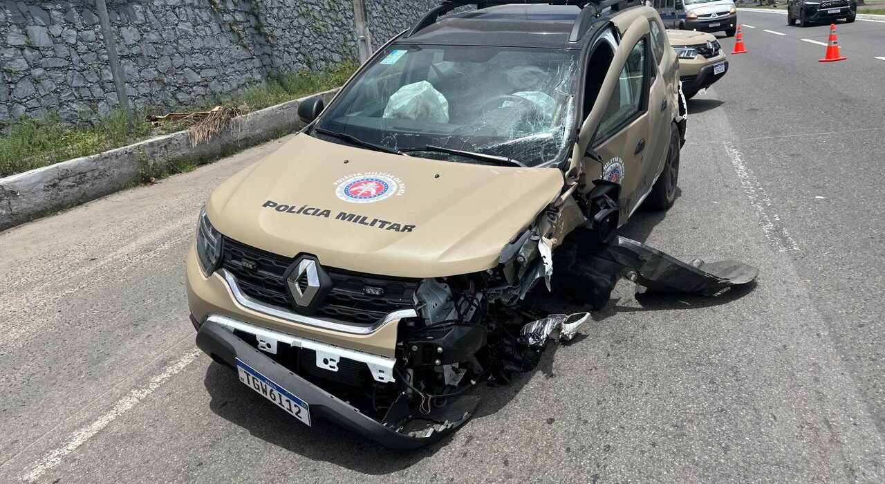 Viatura da PMBA sofre acidente na avenida Presidente Dutra