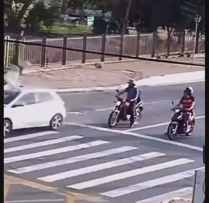 Pelo registro em vídeo, é possível observar a dinâmica da colisão. A motocicleta da vítima aparece parada no semáforo, aguardando regularmente a abertura do sinal. Instantes depois, um carro de passeio, modelo Chevrolet Onix, surge pela via e atinge de forma violenta a traseira da moto.