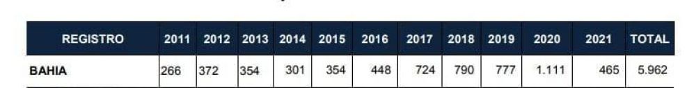 A pesquisa realizada pelo CN junto a (SSP-BA), aponta que o Estado registrou entre 2011 e 2021 5.962 mortes em confronto com as policiais. Confira os dados fornecidos pela SSP ao https://www.conectadonews.com.br/