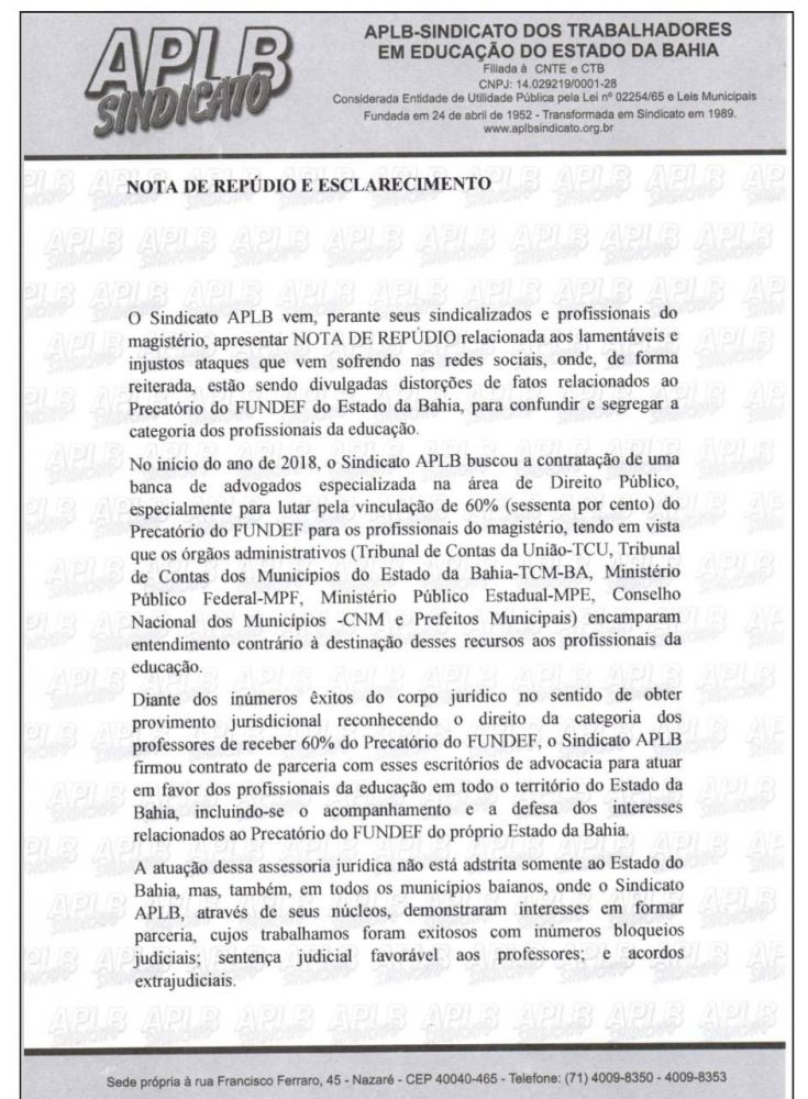 Confira nota de Esclarecimento e repúdio da APLB-Bahia enviada ao Conectado News