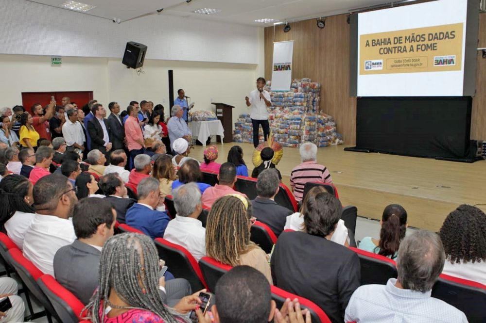 Nesta sexta-feira (24), o governador Jerônimo Rodrigues apresentou o Programa Bahia Sem Fome, em evento realizado no auditório do Colégio Estadual Vila Canária, em Salvador. O programa irá alcançar e dar suporte a cerca de 1,8 milhão de cidadãos que hoje se encontram em situação de insegurança alimentar e nutricional, com a execução de diversas ações de inclusão social e transferência de renda. A primeira etapa da campanha consiste na arrecadação de alimentos, envolvendo órgãos públicos, a iniciativa privada e a sociedade civil organizada.