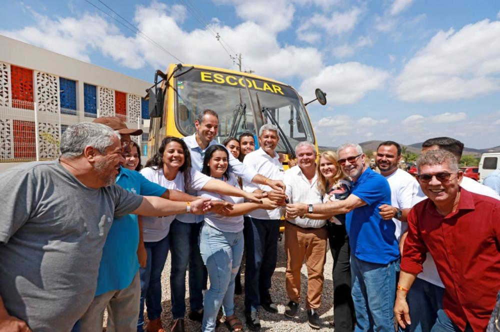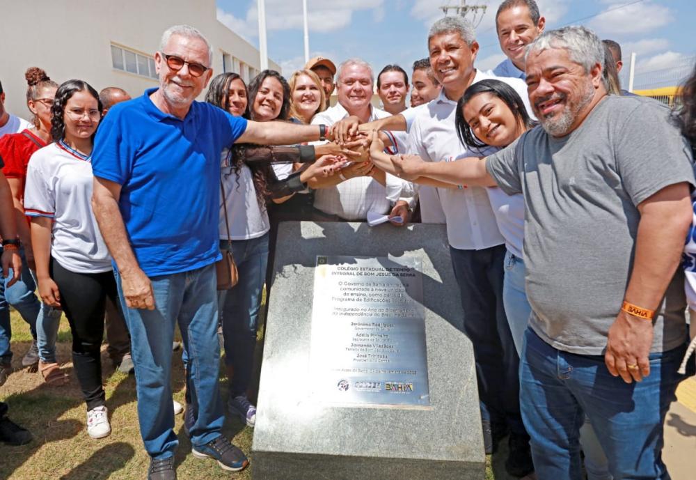 A população de Bom Jesus da Serra, na região sudoeste da Bahia, recebeu a visita do governador Jerônimo Rodrigues, neste sábado (4), para inauguração de uma série de obras de educação, infraestrutura e abastecimento de água. Entre as entregas, estão um colégio estadual de tempo integral, um ônibus escolar, uma areninha society, além de obras de pavimentação asfáltica da rodovia BA-640, nos trechos que ligam Bom Jesus da Serra às cidades de Mirante e de Poções. Também foi dado por entregue um sistema de abastecimento de água, no povoado de Coelbinhas.