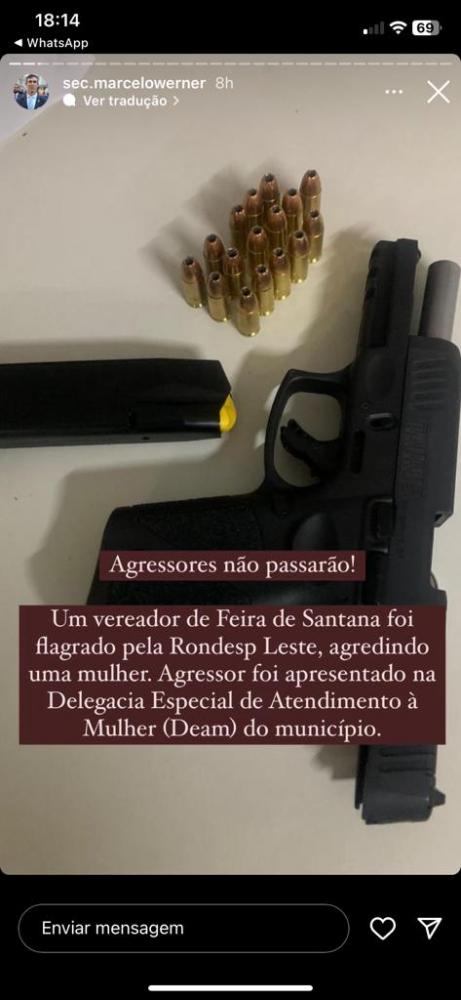Em uma publicação no stories do seu Instagram pessoal, Werner disparou contra o edil feirense.