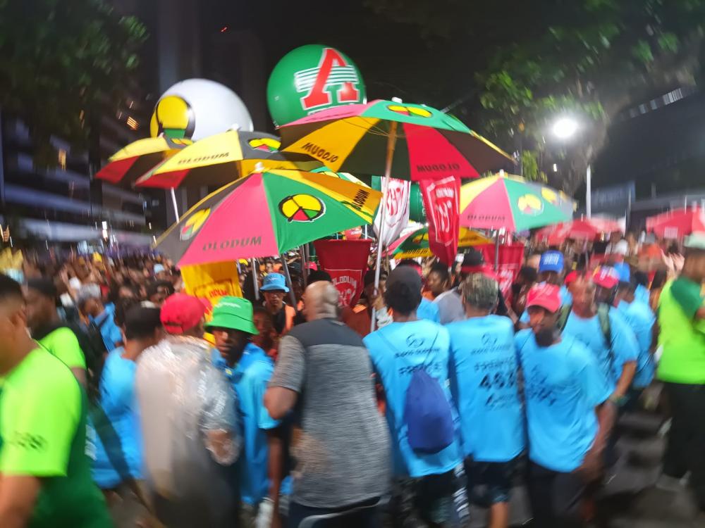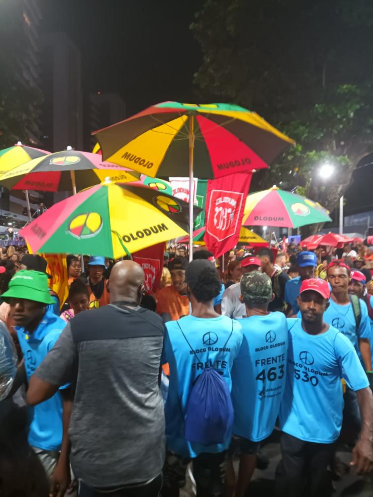 A Banda Olodum agitou uma multidão na noite deste domingo (11) no quarto dia de folia no circuito Barra/Ondina. Durante a apresentação, a banda trouxe antigos sucessos da Axé Music, como "Prefixo de Verão", da Banda Mel e Nossa Gente (Avisa Lá), um dos grande sucessos da Banda nos anos 90.