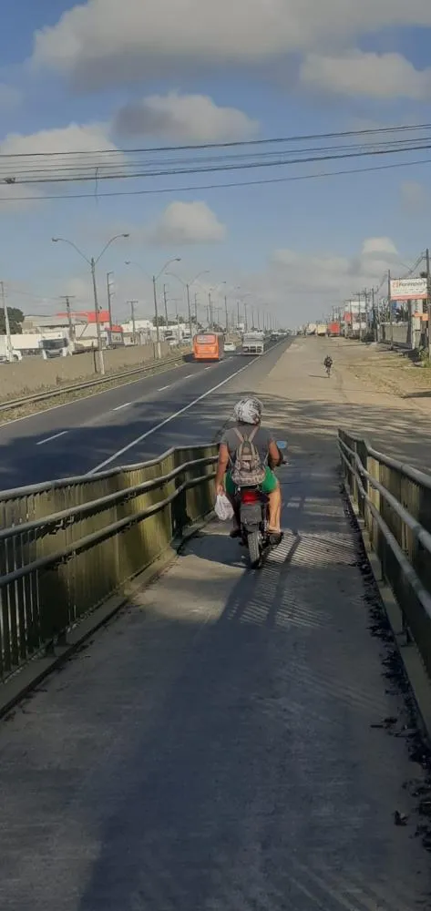 Internautas enviaram fotos e vídeos de motociclistas desrespeitando a lei e os pedestres e trafegando por dentro da passarela próxima ao Parque de Exposições João Martins da Silva, na BR 324.