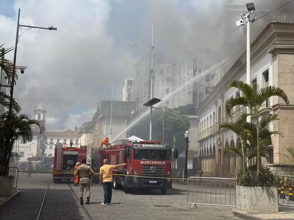 Pelo menos três caminhões do Corpo de Bombeiros estão no local e os militares tentam combater as chamas. A Polícia Militar também foi acionada e está no local. A Superintendência de Trânsito do Salvador (Transalvador) interditou a rua, na Praça Thomé de Souza.