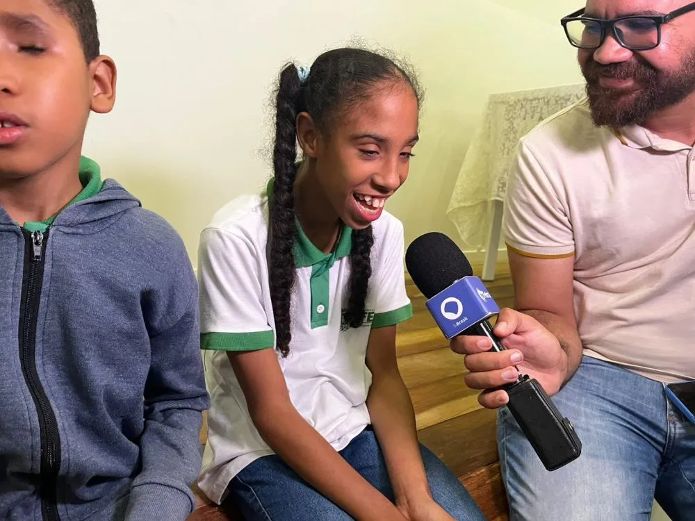 Vitória Gonçalves Mascarenhas, uma das alunas contempladas, disse estar emocionada ao receber o equipamento.