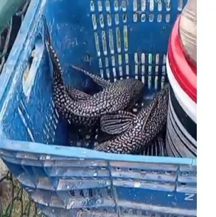 Entre as espécies vistas no vídeo, estão o acari (ou cascudo) e uma carpa colorida. De acordo com o especialista, nenhuma delas deve ser consumida.