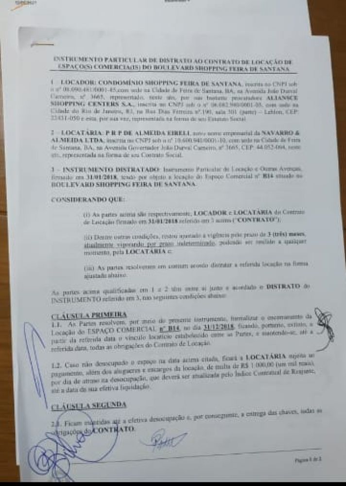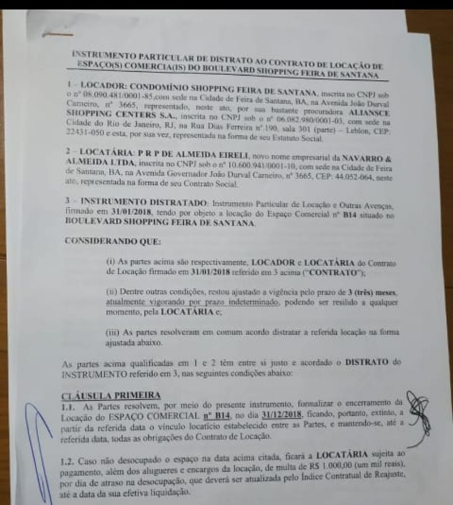 O proprietário da Empresa PRP Almeida Eirelli, que ficava no Boulevard Shopping em Feira de Santana, alegou que a administração do shopping barrou a retirada de matérias da loja, que atualmente está de mudança para outro local.