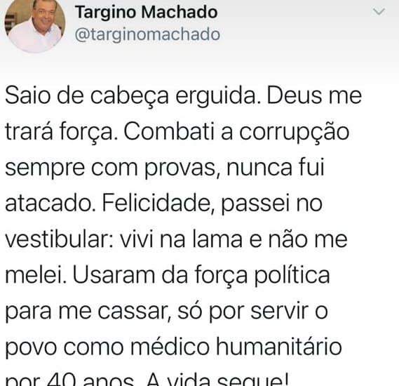 Através das redes sociais o deputado Targino Machado,fez essa postagem.